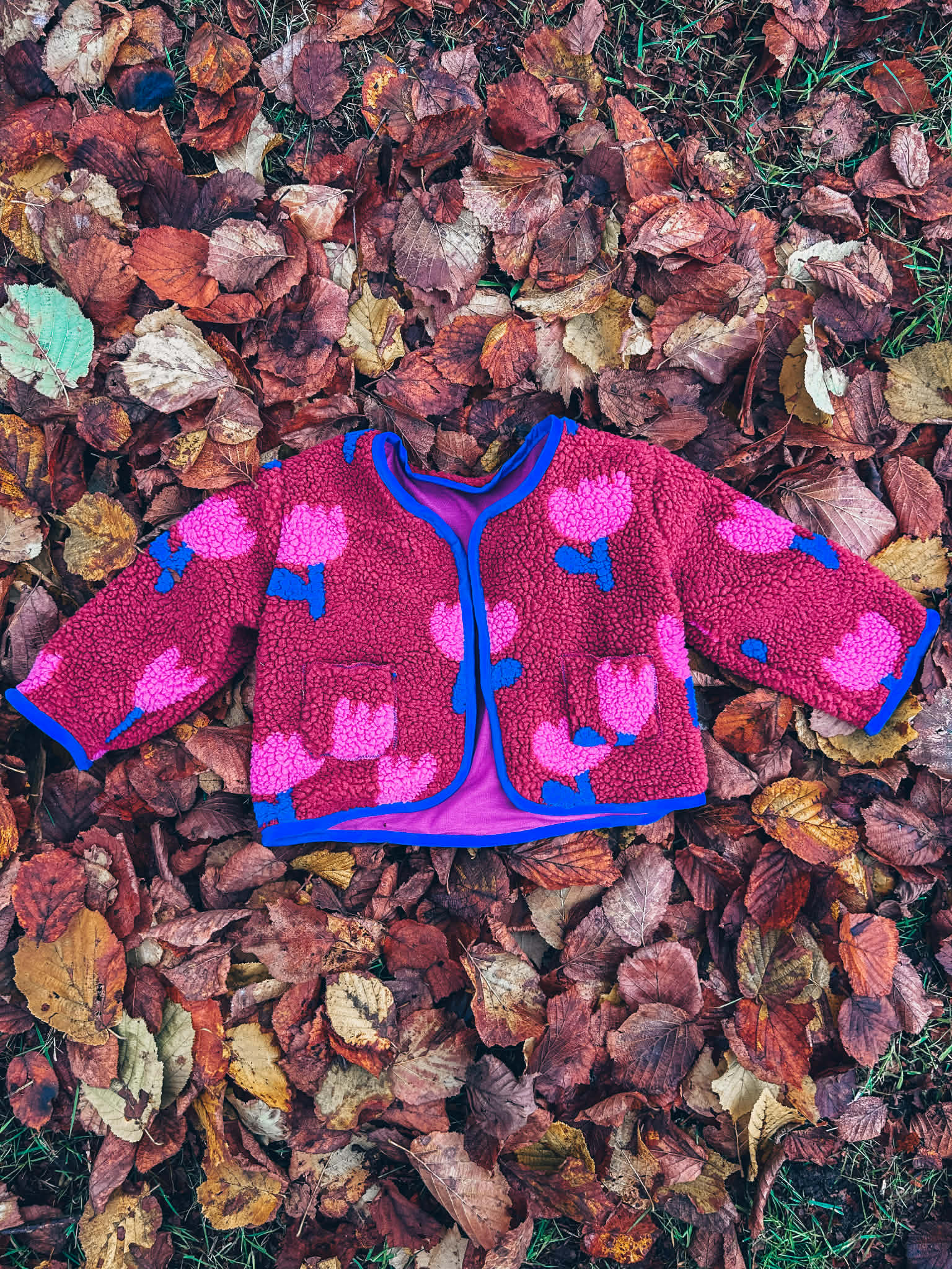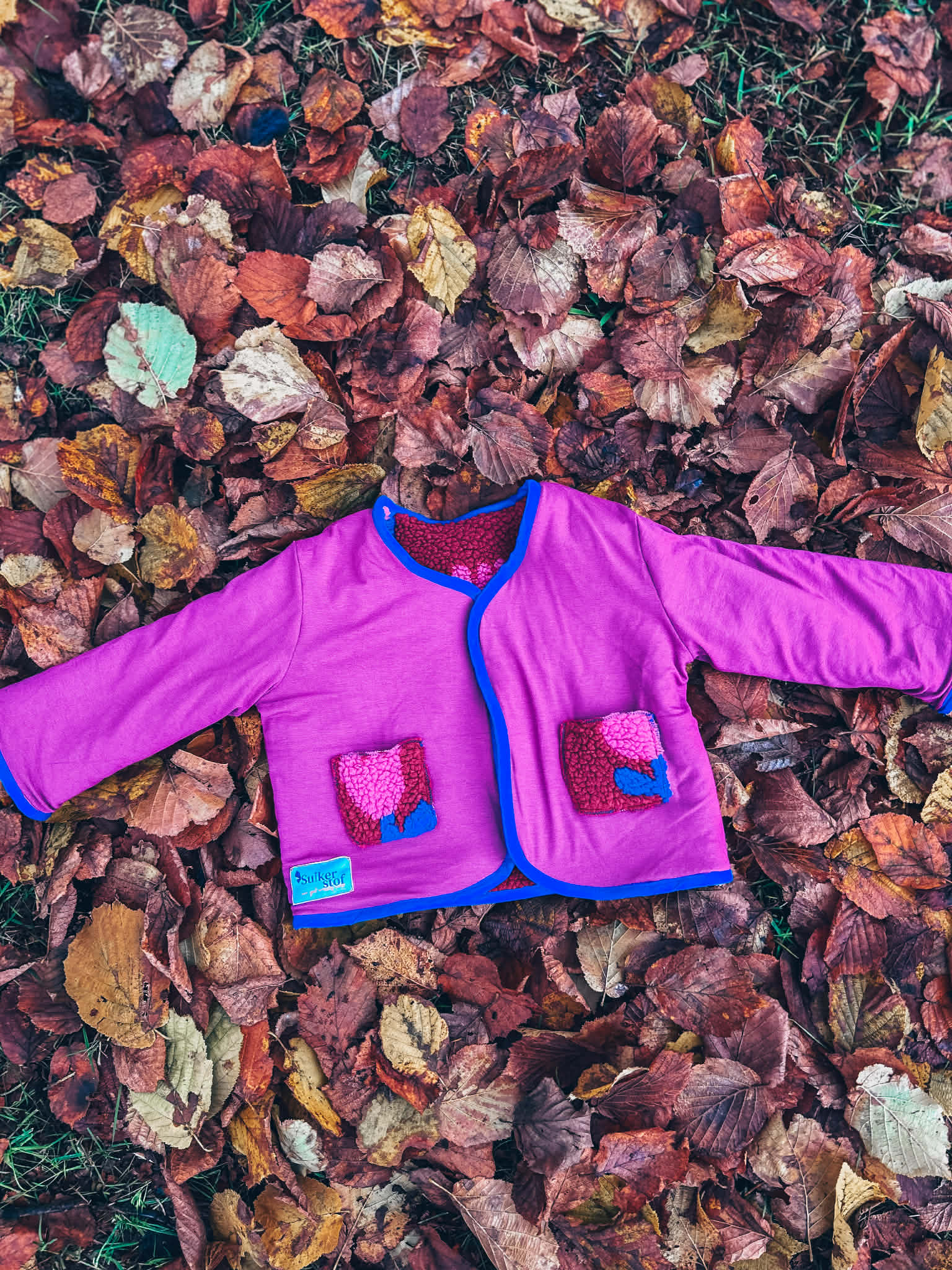 Een vrolijk en speels jasje om jouw kleintje te verwarmen! En bovendien langs beide kanten te dragen!